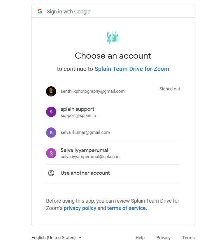 Splain will perform the authorization sequence with Zoom and get access for your recordings and the user profile.
